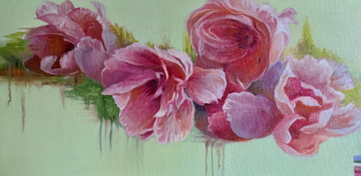 Larine Chung is an artist and educator who thrives on creativity and exploration. With a curious mind and a knack for observing the world around them, Chung brings ideas to life through a mix of mediums—painting, writing, and music. Passionate about storytelling, their work seamlessly blends the visual, literary, and auditory, capturing the attention of both viewers and listeners. “Becoming” is a meditation on how perception-like melody-shifts with movement, memory, and mood. Composed from imagination and guided by the contours of a musical phrase, this piece explores how a bloom might unfold not just in space, but in sound and feeling. Rather than rendering from life, I built the flowers through color and abstraction, balancing flatness with spatial harmony. The petals emerge and dissolve, suspended in a field of green that both holds and distorts them. This tension between depth and surface invites the viewer to consider how we construct beauty-how our inner rhythms shape what we see. In this work, perspective is not fixed. It is fluid, like a melody remembered differently each time it's heard. The bloom becomes a lens, a question, a quiet song about how we see and what we bring to the seeing.